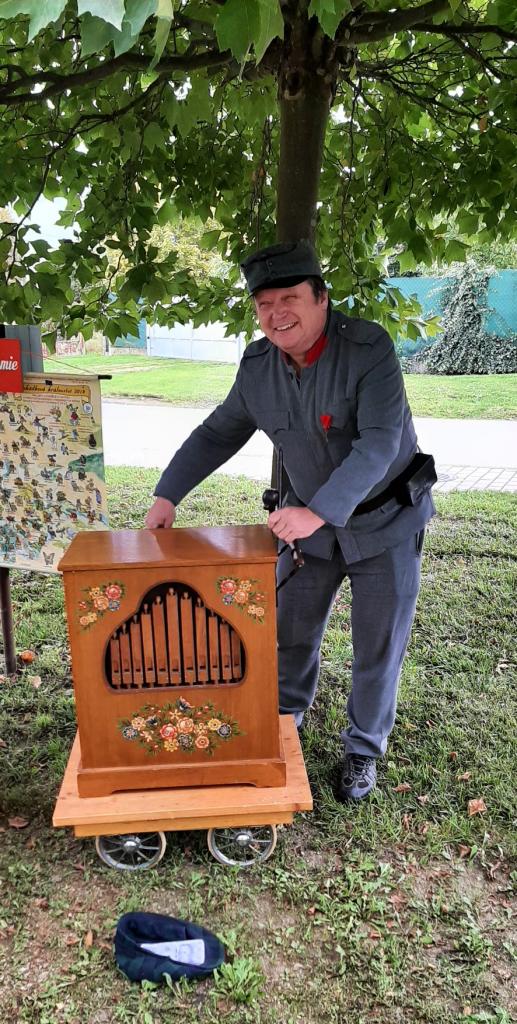 Švejk zahrál písničky z flašinetu a ukázal všem, jak takový nástroj vypadá uvnitř. Paní starostka poté převzala z rukou pana kancléře Goetze pamětní medaili za to, jak ochotně a nadšeně se obec Ražice zapojila do letošního ročníku akce.